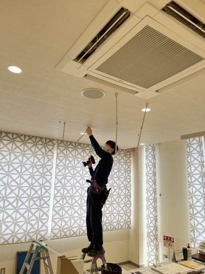 エアコンが効く様に、上部が開いた吊り下げ式のカーテンレールを取付させていただきました。