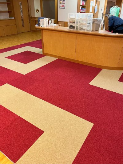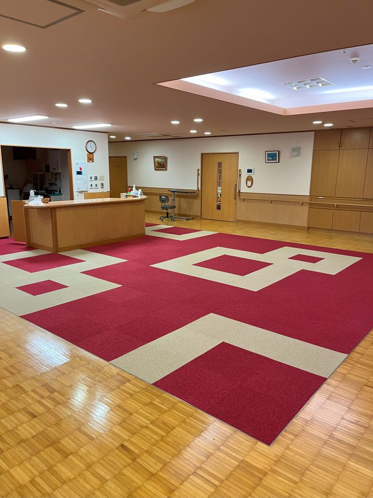 老人福祉施設の食堂のタイルカーペットを貼り替えに行ってきました。