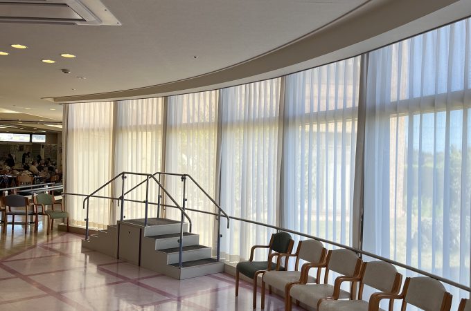 介護老人保健施設のロビーのカーテンを 交換しに行ってきました。 これまで使用していたカーテンは スタイルカーテンで上げ下げするタイ...
